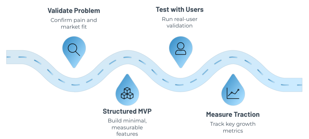 When pitching with MVP, your narrative should follow a logical sequence that reflects strategic thinking and readiness. Investors are impressed when founders clearly articulate the problem, show early validation, and position capital needs as direct accelerators of measurable progress.