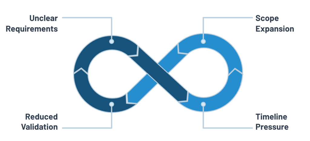Common gaps include scope creep, misaligned expectations between roles, unclear requirements, and insufficient feedback loops. These issues often lead to delays and fragmented development cycles.